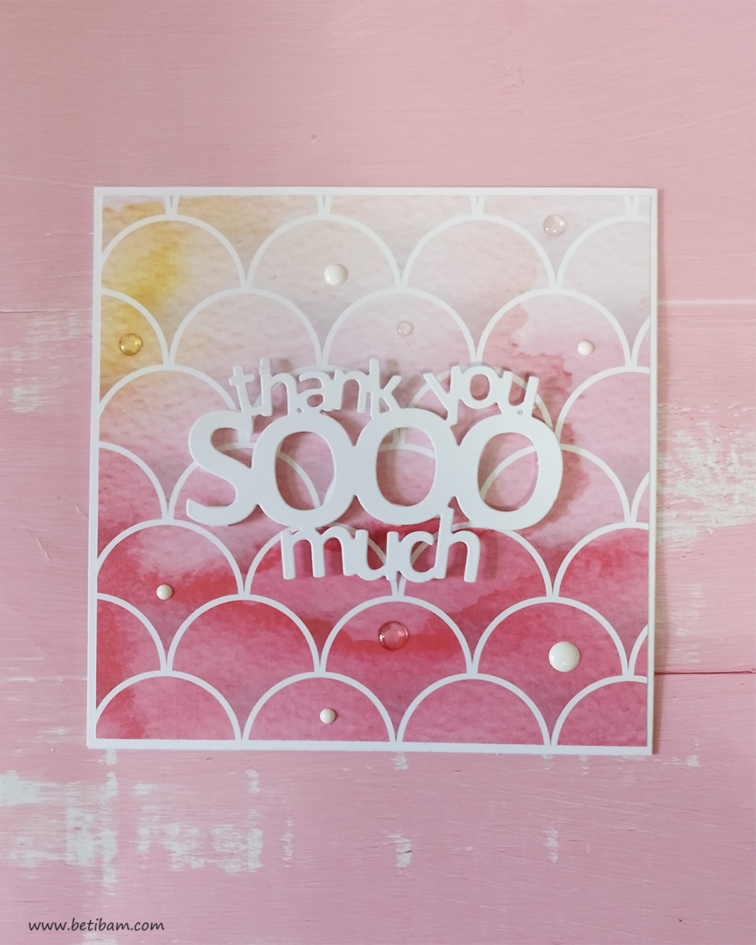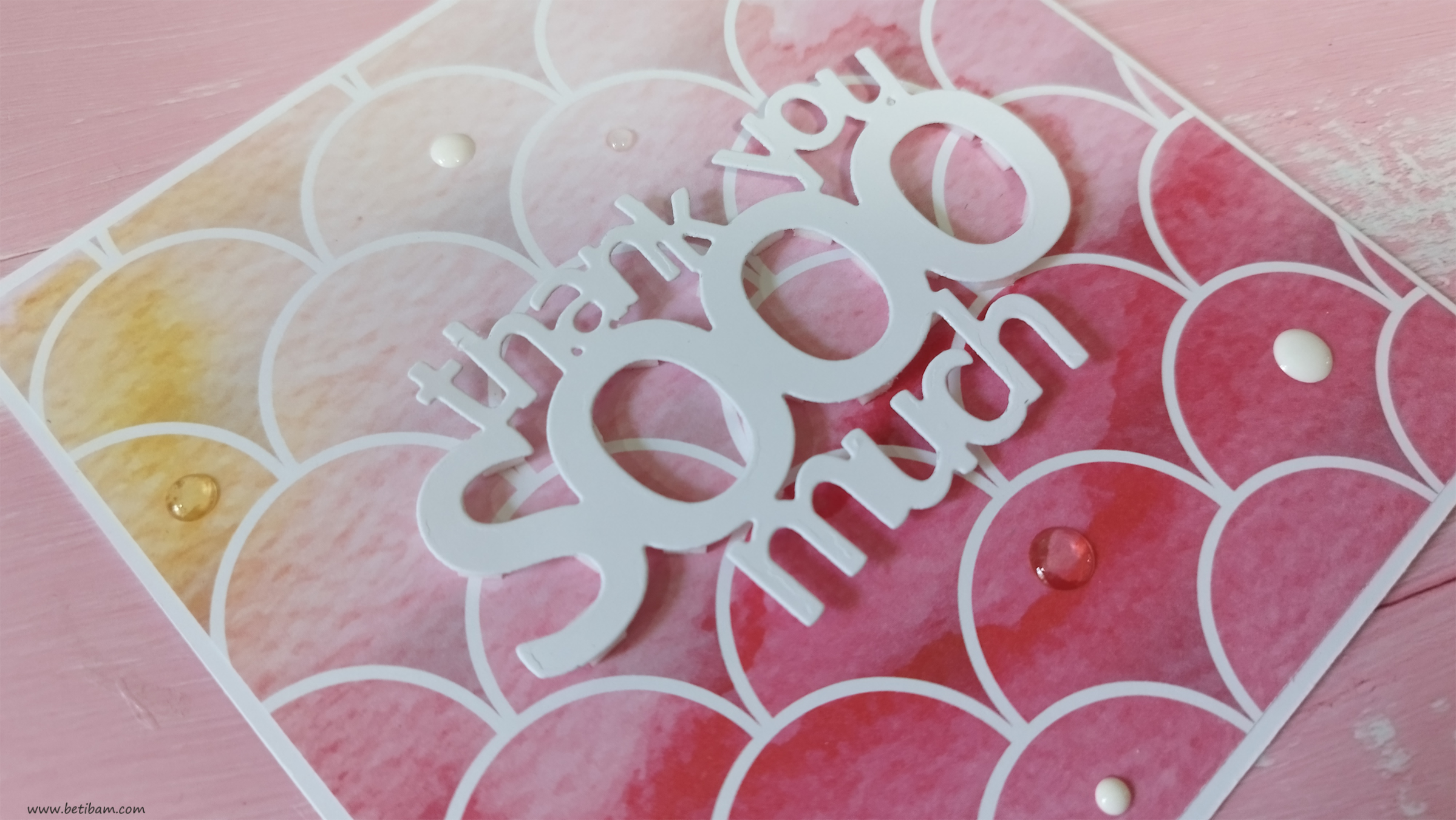 לכל כרטיס הוספתי כיתוב כיפי שחתכתי עם הביג שוט, ופיזרתי מסביב נקודות דביקות בצבעי לבן ושקוף.