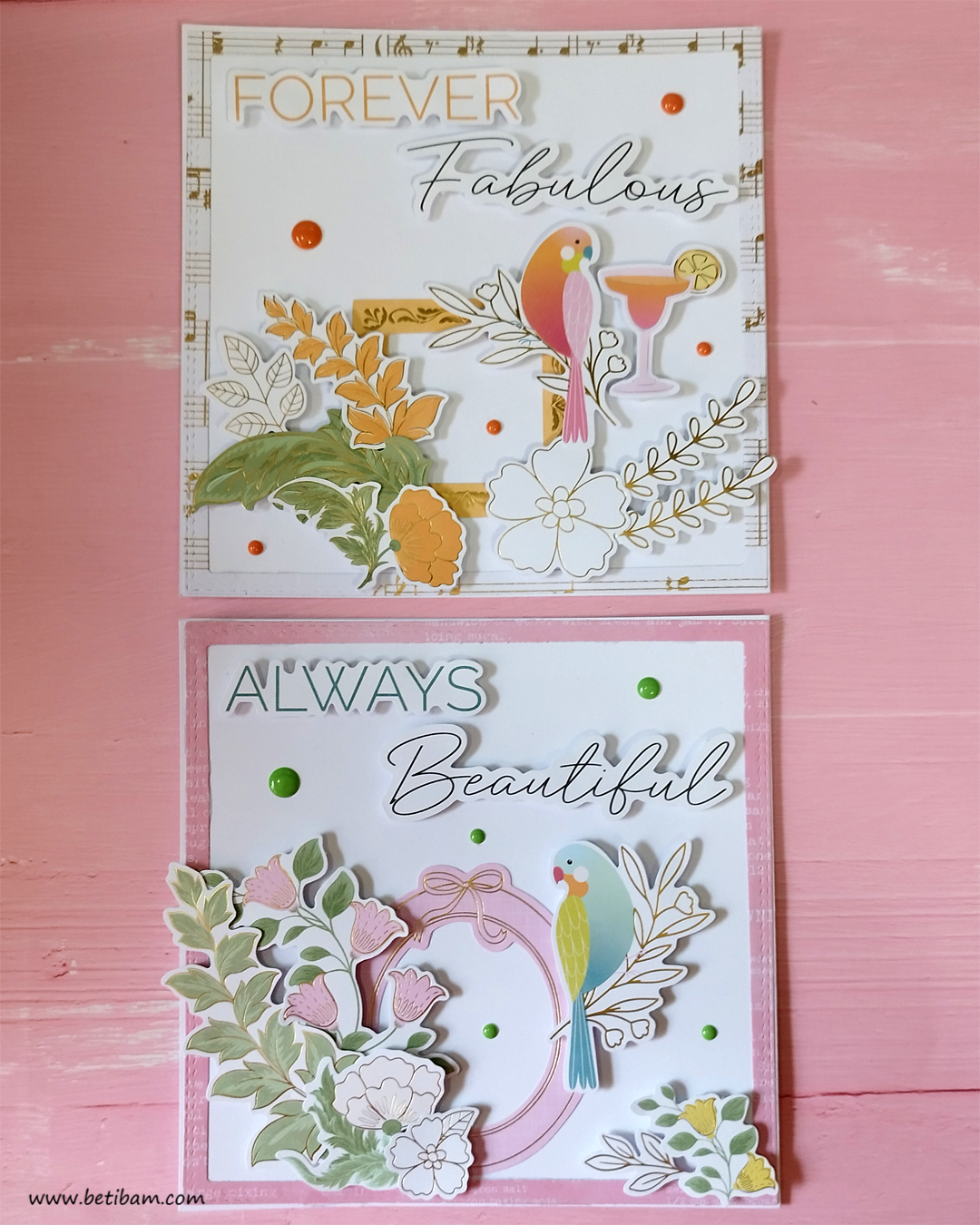אבל בואו נחזור לזוג הכרטיסים שלנו, הפעם בחרתי להוסיף להם את הציפורים, כי הן באמת היו חמודות, ולבנות איתן את העיצוב מסביב.