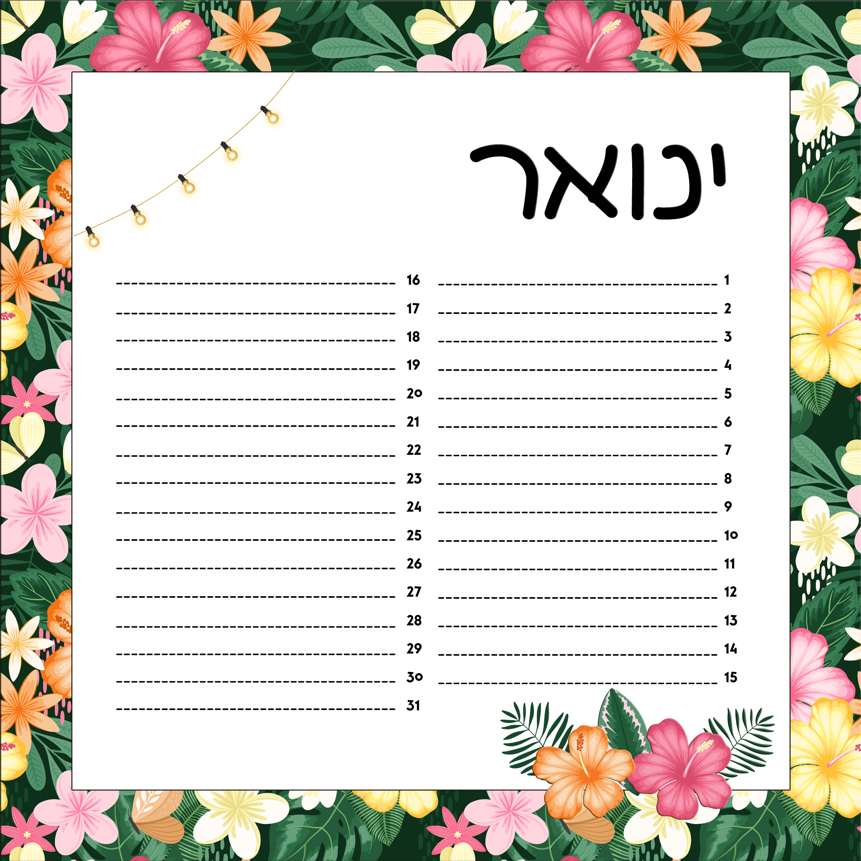 ניתן לקרוא לו גם לוח לעולם / לשנים / תמיד, לוח חודשי מינואר ועד דצמבר עם מספור הימים של אותו החודש (יש גם עיצובים של תאריכים עבריים כמובן או שילוב של השניים), ניתן כמובן גם לסדר את החודשים לפי סדר שמעוניינים בו, אני כמובן הלכתי על ברירת המחדל הרגילה. בלוח הזה אנחנו מרכזים את כל האירועים החשובים שחוזרים על עצמם באופן שנתי כגון: ימי הולדת, נישואים וכד'.